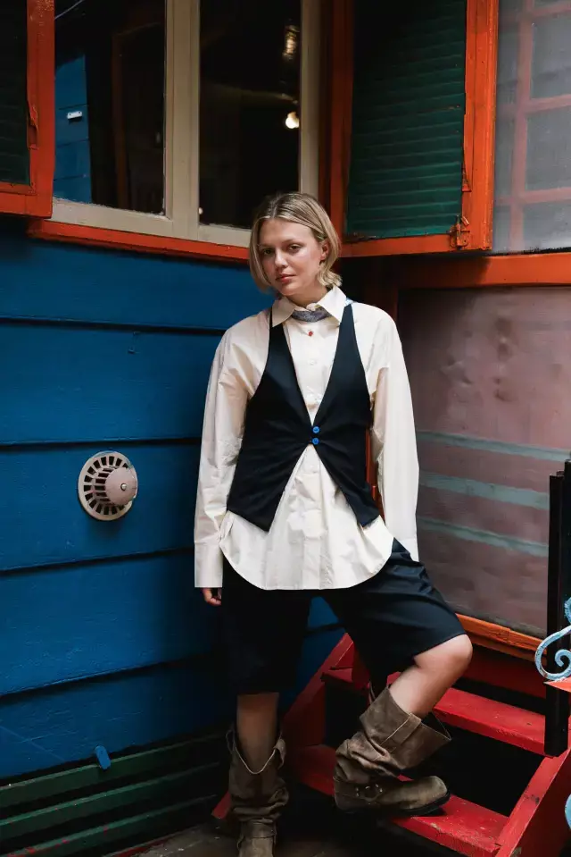 Queríamos crear un top que refleje la feminidad y sensualidad de la mujer, respetando la comodidad y elegancia. Y creo que lo logramos. Una espalada que deja muchas ganas de explorar, un escote discreto, dos botones en el pecho, y un gran movimiento.