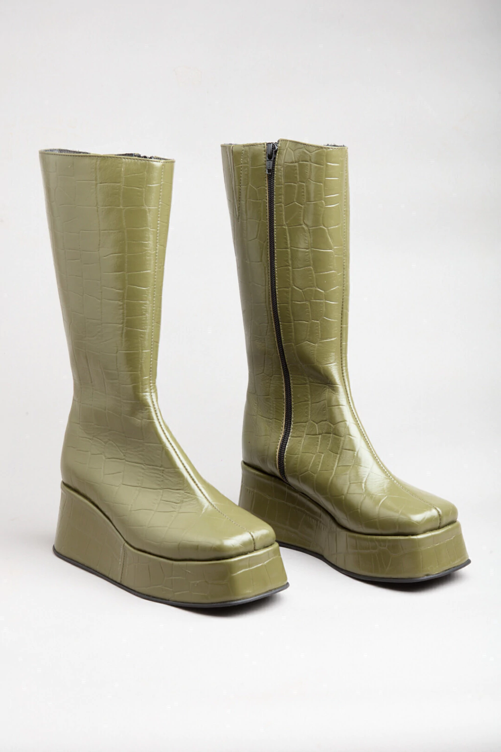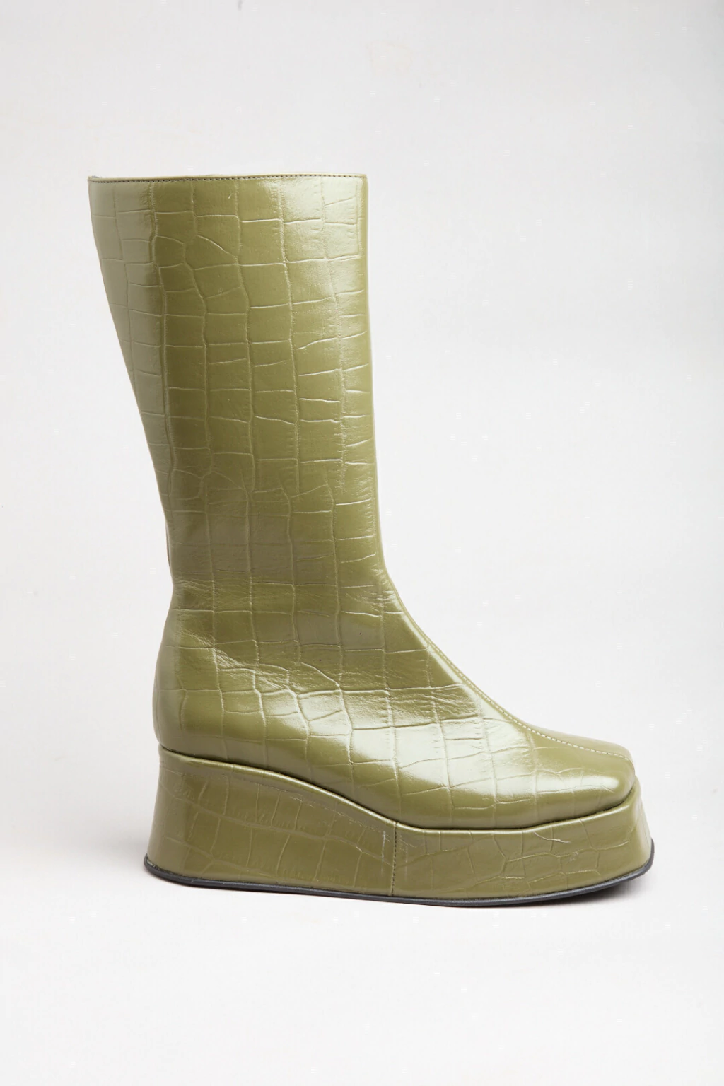 Acceso mediante cierre lateral, tiene un pequeño recirte tringular con elastico que permite adaptarse mejor a tu pierna.