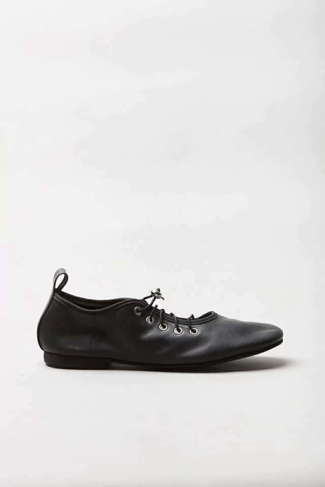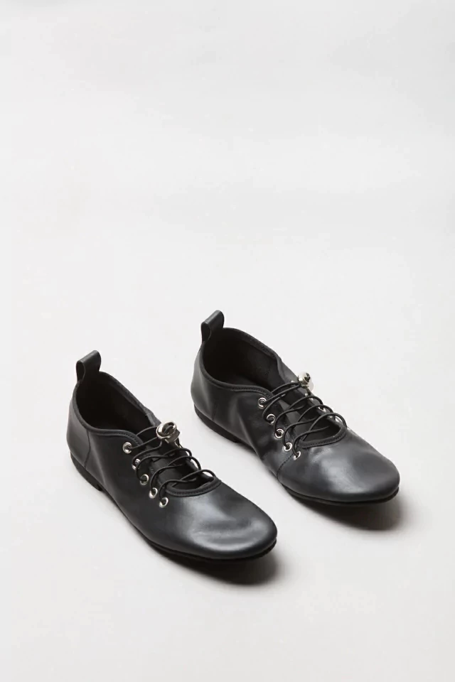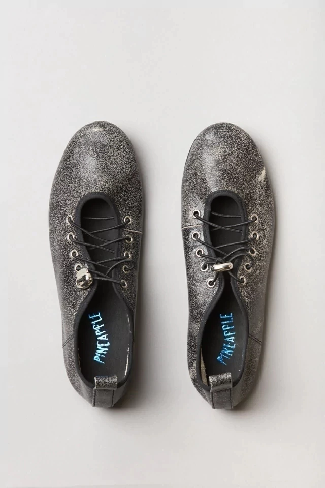 Acceso mediante cordón elástico a tono, cierre con tanca plateada.