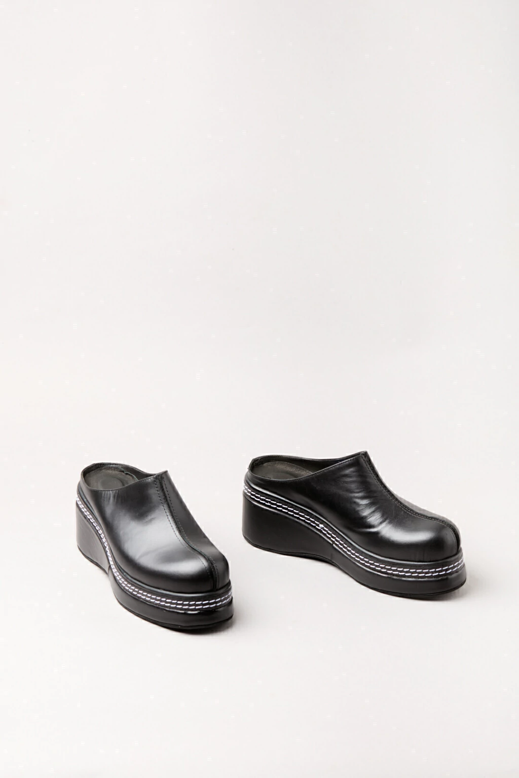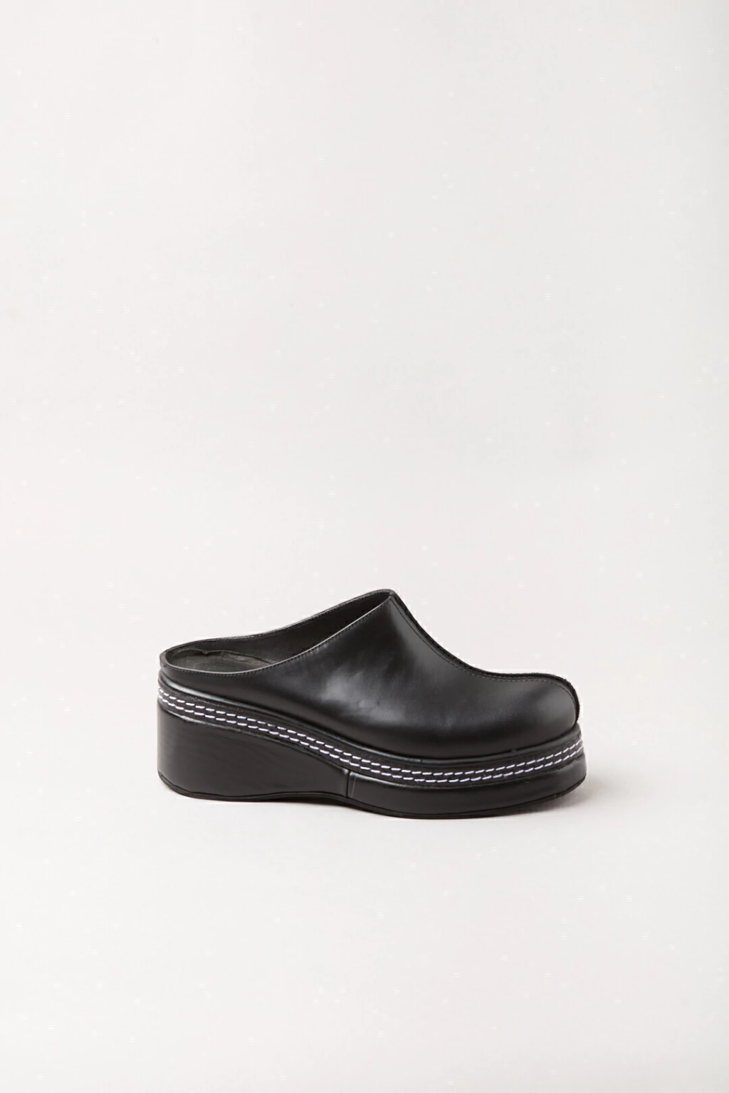 Fondo artesanal forrado en cuero, detalle de vira con doble costura color blanco.