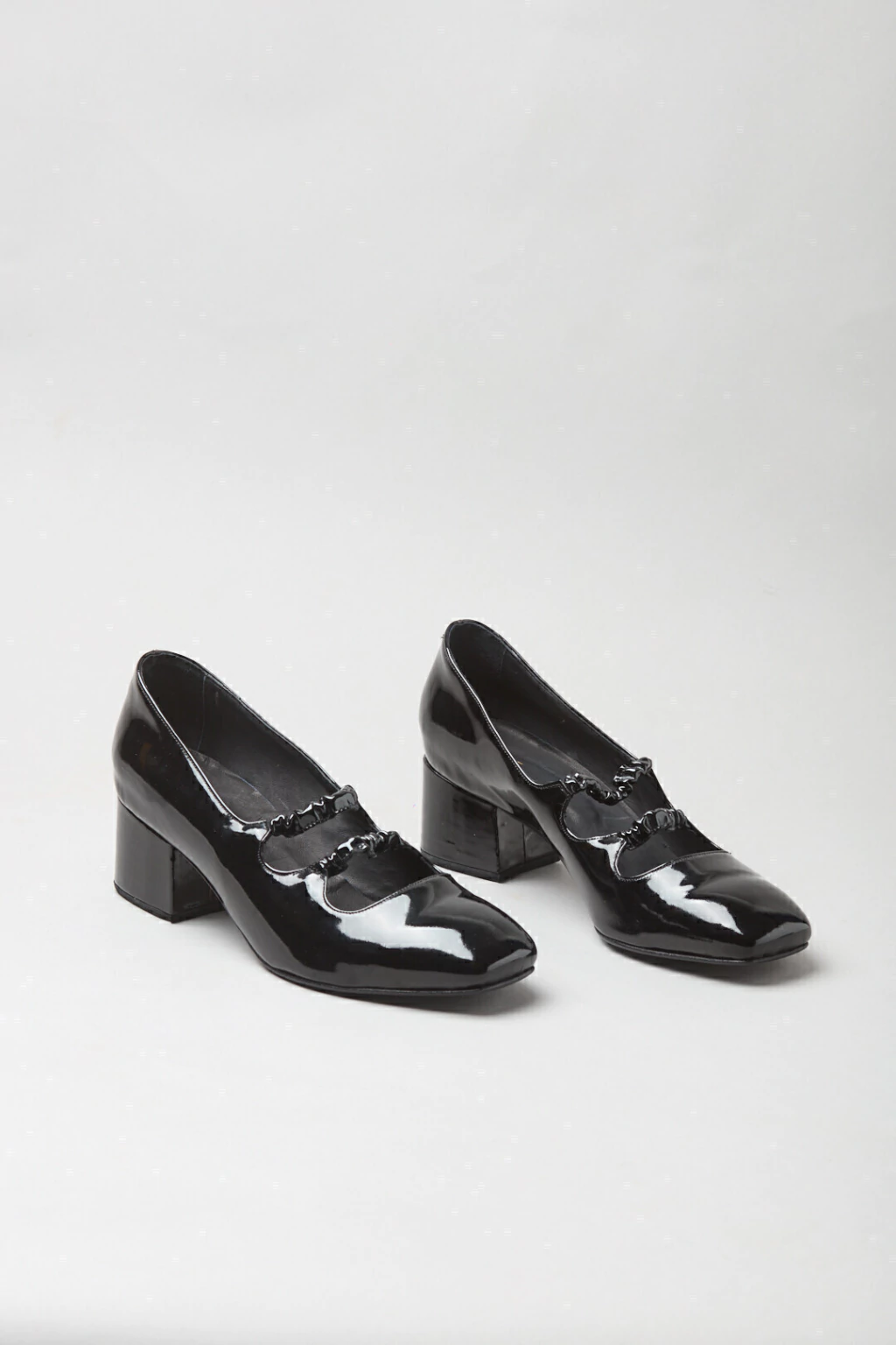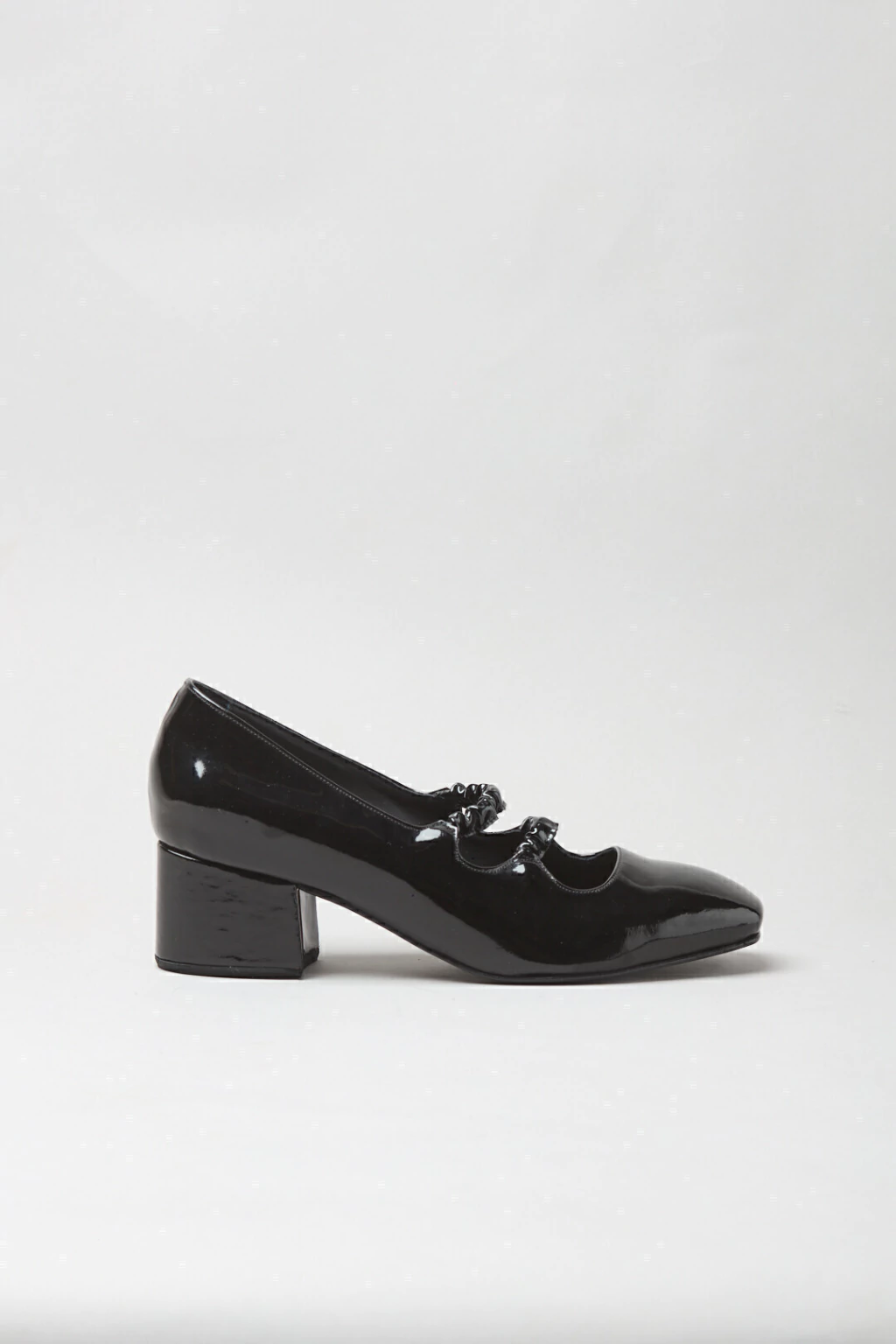 Acesso mediante elásticos forrados con efecto scrunchie, permitiendo que el pie este agarrado y sostenido suavemente.